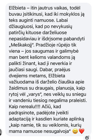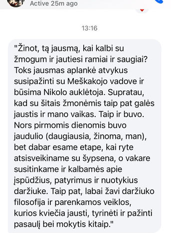 Kartais geriausiai apie darželį papasakoja ne aprašymai ir nuotraukos, o kitų tėvų patirtys. Dalijamės tuo, ką girdime iš šeimų, kurios kasdien gyvena Meškakojo ritmu.